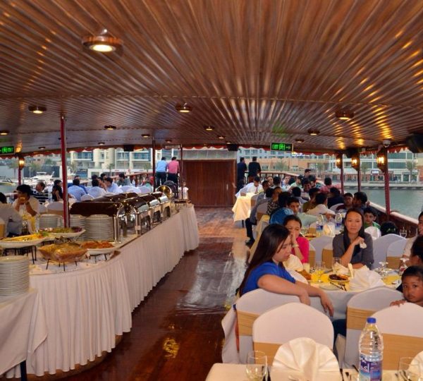 Luxurious Adventure commitment to convenience is evident with door-to-door round-trip transfers from your hotel or residence, ensuring a hassle-free experience. The Dubai Marina Luxury Dhow Dinner Cruise offers two distinct ambiances: the lower deck, ideal for a once-in-a-lifetime luxury experience with its air-conditioned environment, and the top deck, perfect for a romantic setting under the stars.